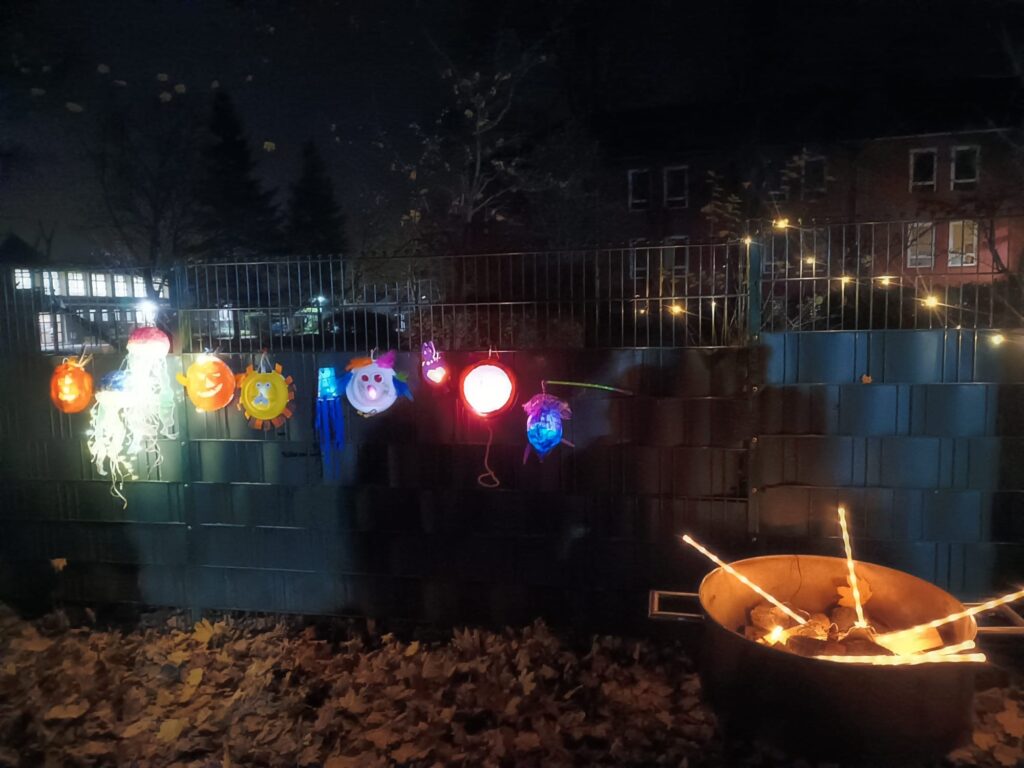 Die Zeit ist auch geprägt von vielen Bastelarbeiten und dem Proben einer kleinen Aufführung der Kinder für die Eltern; aber natürlich auch mit viel Musik und Singen der Martins- und Laternenlieder.
