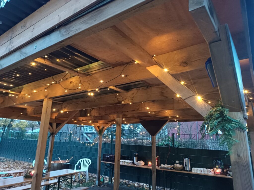 Zum Abschluss des Laternenfestes wird noch bei heißen Getränken und Würstchen gemeinsam geklönt. Natürlich ergeben sich dabei immer wieder nette Gespräche, bis der Abend so langsam mit müden Kinderaugen ausklingt!
